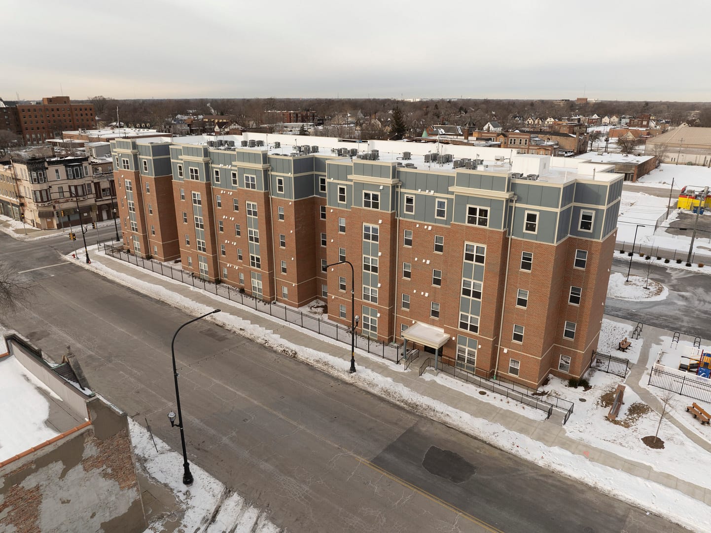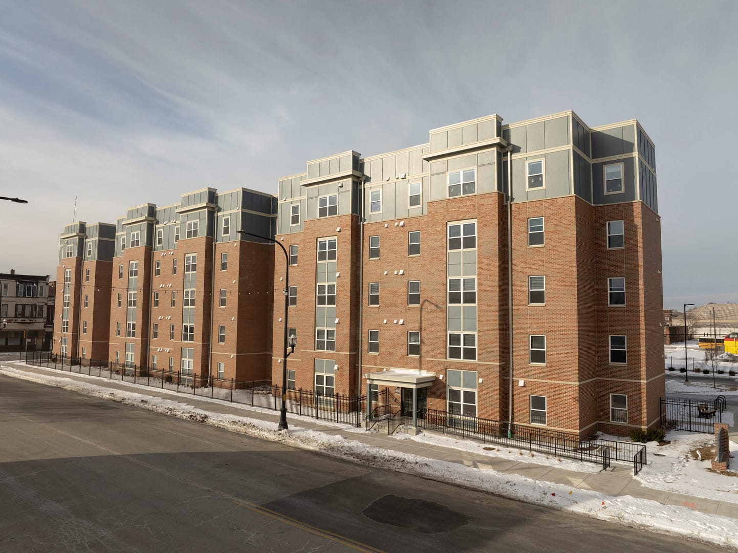 This new construction development consists a 5-Story, 66,450 SF muti-family, affordable development. This high-end facility is constructed as an all electric building and includes 51 residential units. The amenities include a community room, laundry facility, fitness room, leasing office, file storage, mail room, fitness center, out door playground and community kitchen.