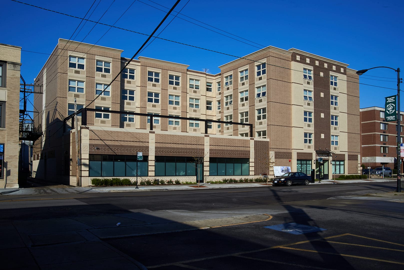 Burling served as the General Contractor for this project. Darul Amaan, which means “peaceful abode” in the Urdu language, is a $14 million, 53,402 SF, 56-unit affordable apartment complex for seniors. The facility includes a parking garage, and a green roof. This project was a precast structure and façade on a tight city site, which required preplanned logistics and daily coordination and planning with our trade partners and city agencies. The five-story structure in Albany Park includes one- and two-bedroom apartments as well as a community room, computer learning center, exercise room and an outdoor terrace.